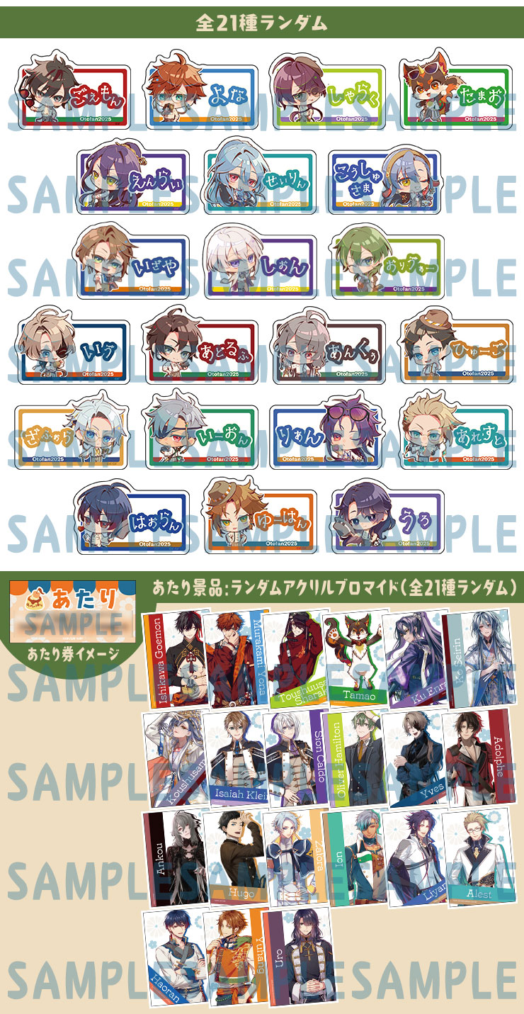 「オトファン2025限定ちびキャラネームクリップくじ」をご購入いただいた方は、必ず会場内【荷物整理場所】で開封し、中身をご確認くださいませ。