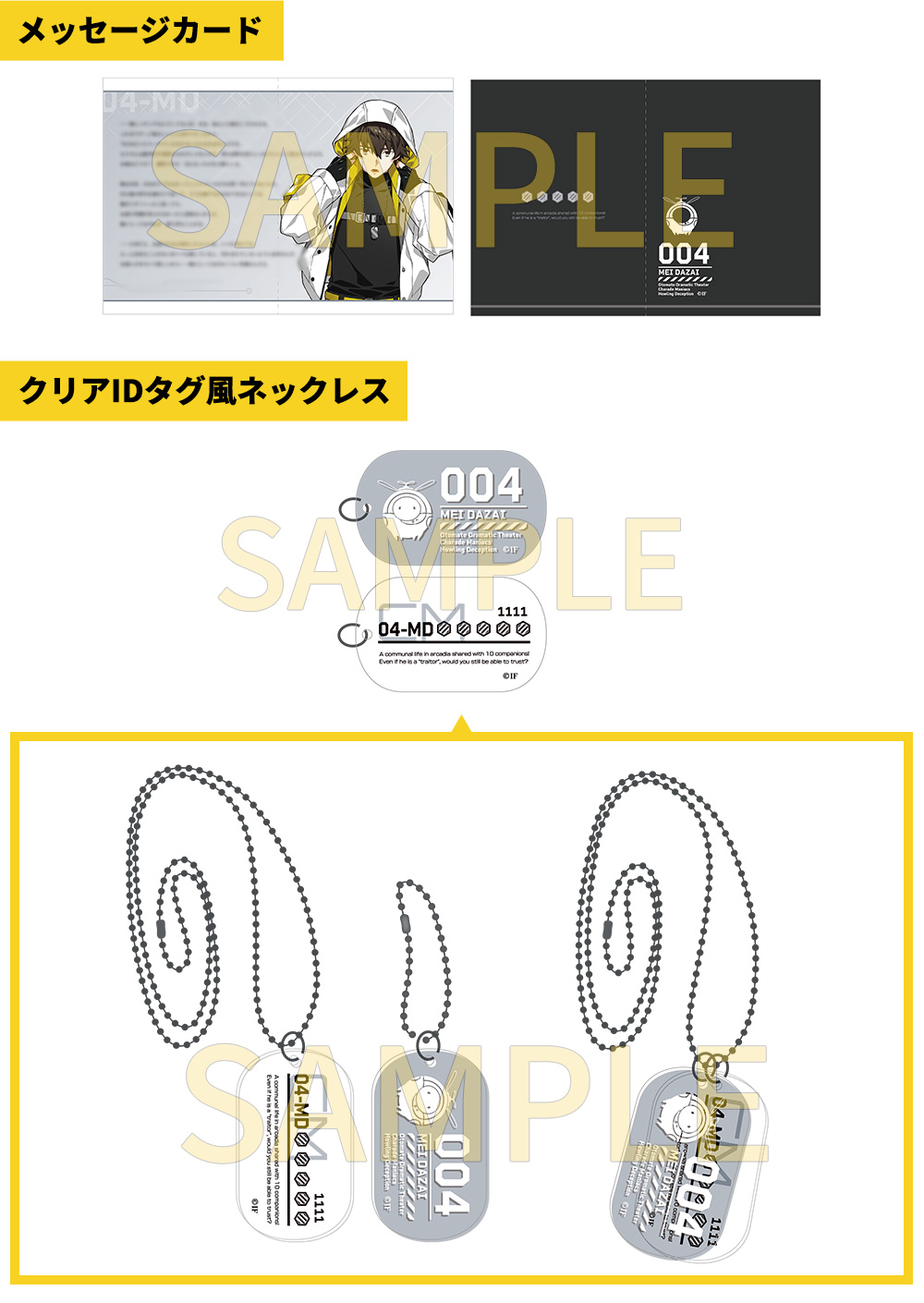 キービジュアルで彼らが身に着けているクリアIDタグをモチーフに、オリジナルタグをグッズにしました!