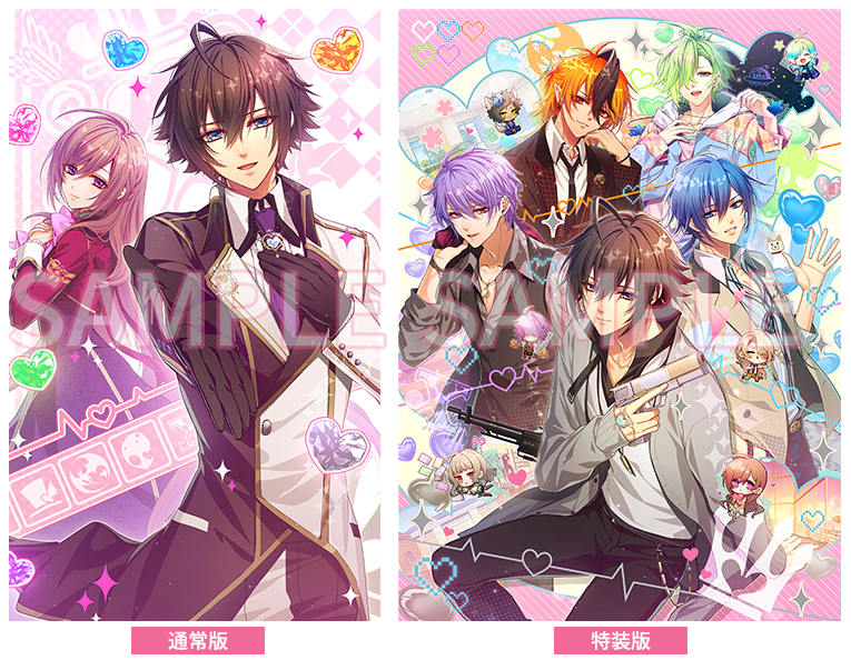 攻略対象キャラクター5名の書き下ろしメッセージ入りイラストカードセットです。