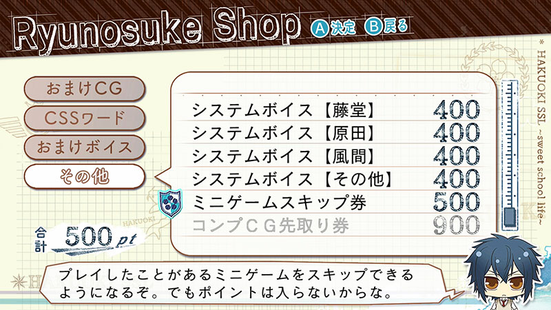 ※『ミニゲームスキップ券』は条件を満たすと龍之介ショップに追加されます。
