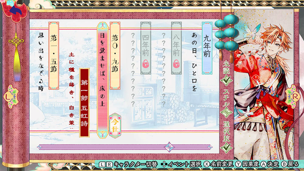 プレイの進行状況や、選択肢の選択で変化する因果度によって、
