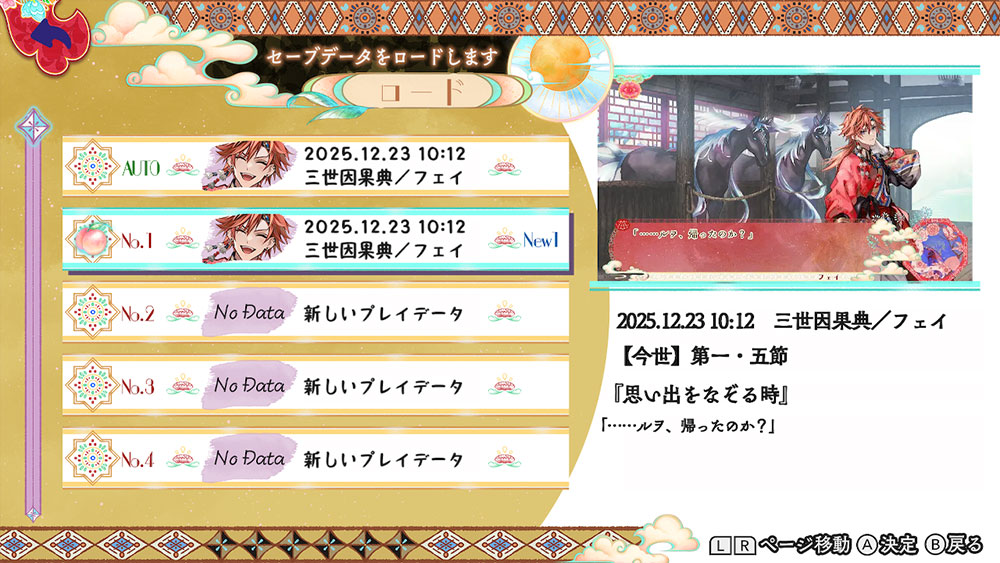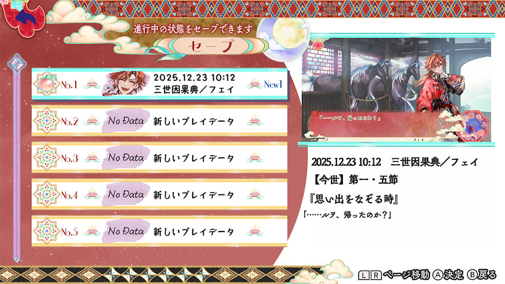- ※三世因果典/喋喋喃喃典では、物語選択画面中にXボタンにて、いつでも変更可能です。