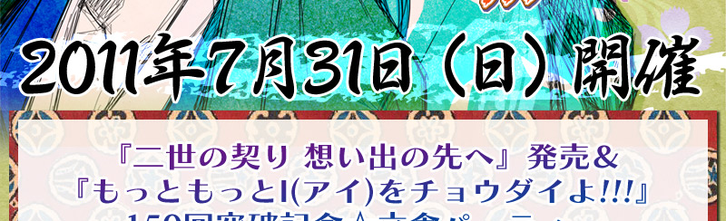 「おかげさまをもちまして、7月31日開催予定「二世の契り 想い出の先へ 発売&もっともっとI(アイ)をチョウダイよ!!!150回突破☆記念立食パーティー」は定員数に達した為予約受付を終了致しました。